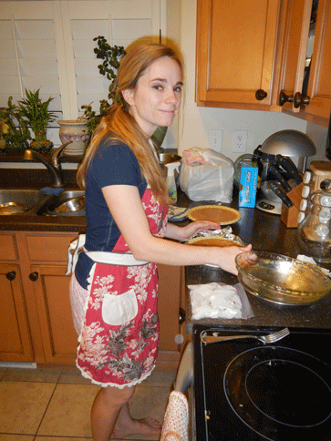 This year I made Mayan chocolate pecan pie, sweet potato praline pie with maple sauce, pineapple upside-down cake, and a host of from scratch toppings for banana splits, including marshmallow fluff. As you might have guessed from that long list, I was in the kitchen for 5 or 6 hours baking alongside my faithful assistant Jason. We didn’t finish until around 1:30 in the morning.